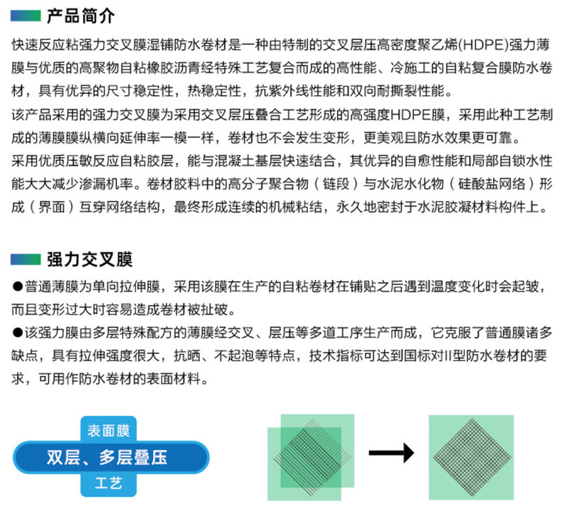 快速反應(yīng)粘強力交叉膜濕鋪防水卷材